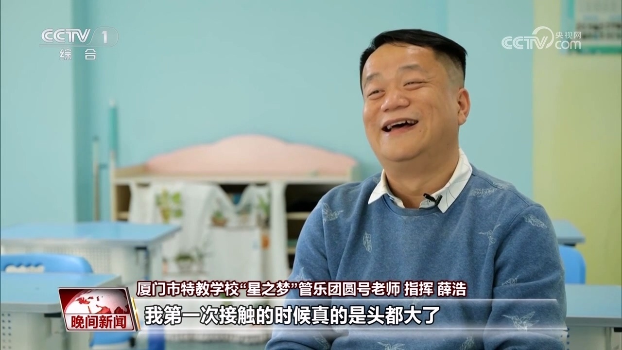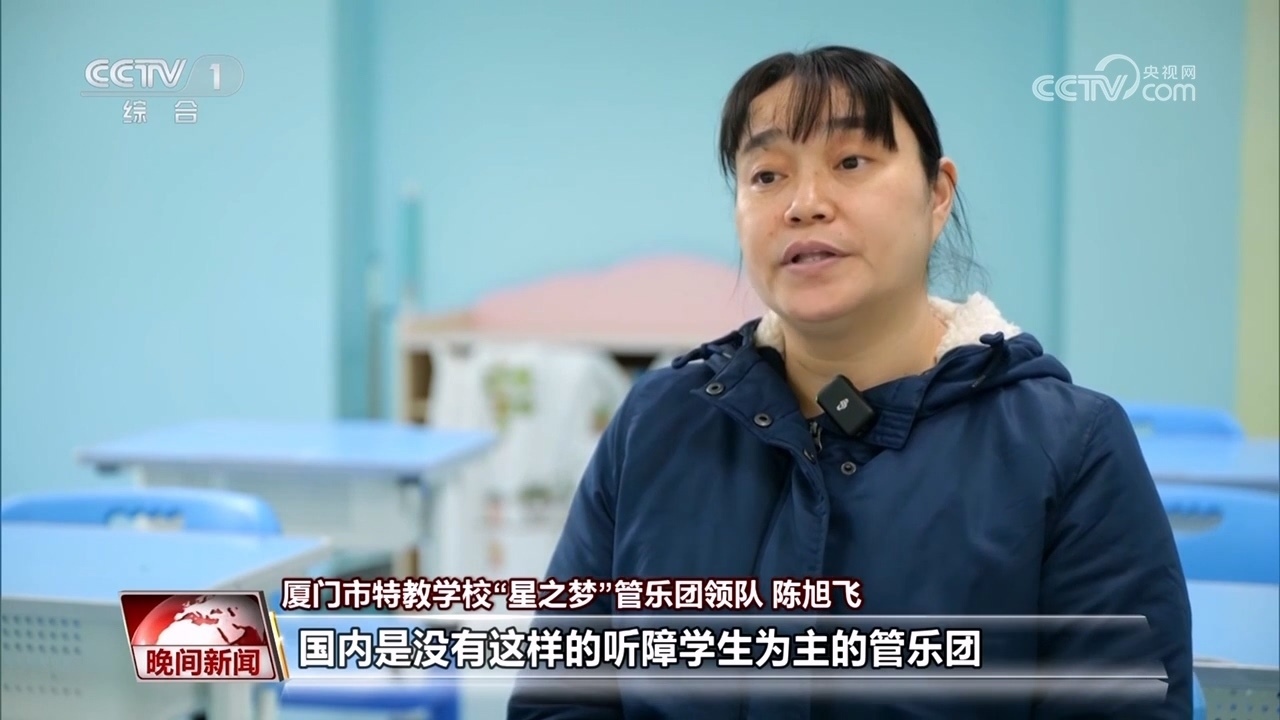 廈門市特教學(xué)?!靶侵畨簟惫軜穲F(tuán)領(lǐng)隊(duì) 陳旭飛:據(jù)我所知的話,國內(nèi)是沒有這樣的聽障學(xué)生為主的管樂團(tuán)。