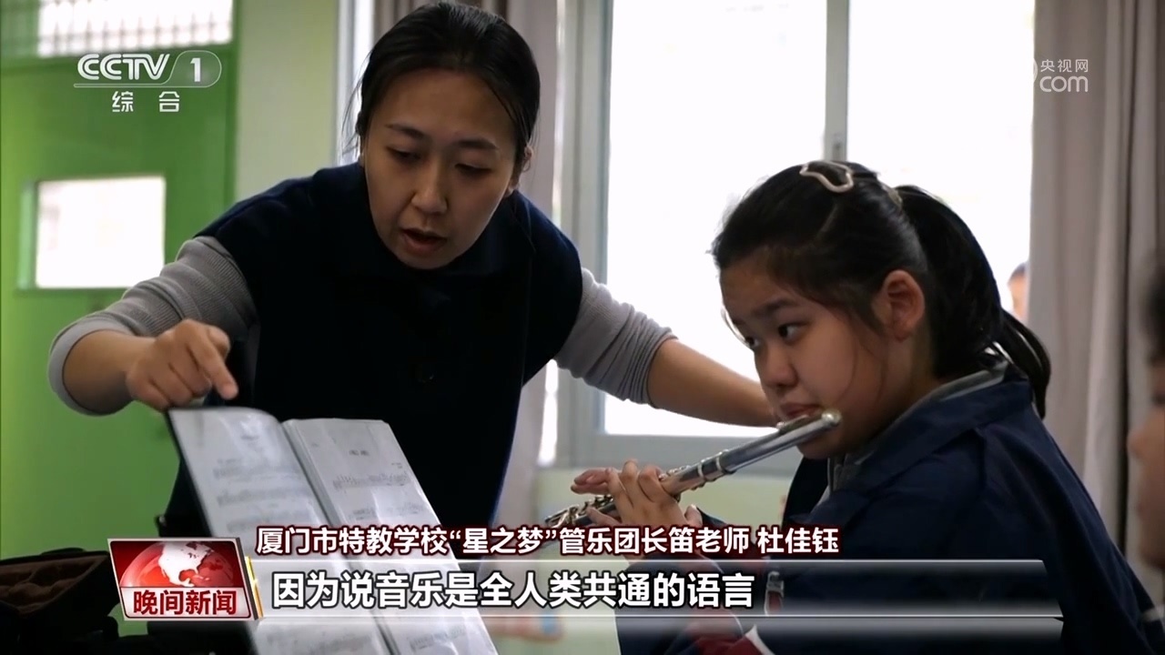 廈門市特教學(xué)?!靶侵畨簟惫軜穲F(tuán)長笛老師 杜佳鈺:因?yàn)檎f音樂是全人類共通的語言,我希望這件事情的意義也是能不要把這些孩子排除在全人類的音樂的共同事業(yè)的范圍之外。