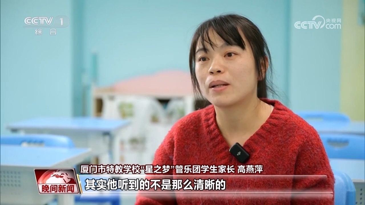 廈門市特教學(xué)?!靶侵畨簟惫軜穲F(tuán)學(xué)生家長 高燕萍:其實(shí)他聽到的不是那么清晰的,但是他會覺得這個(gè)聲音很美,他用手語告訴我,他覺得很美。
