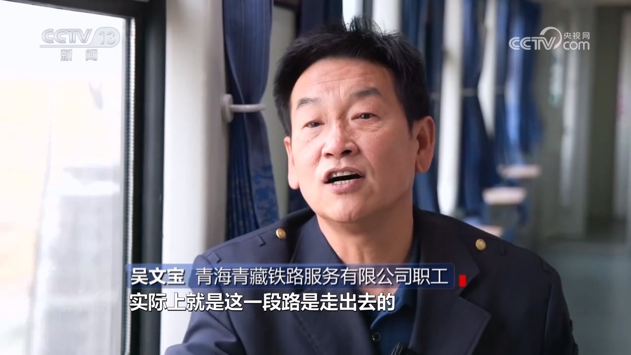 青海青藏鐵路服務(wù)有限公司職工吳文寶:“不能等著雪化了再把車開出去,我們就是司機(jī)開車,我在前面拿著個(gè)竹竿撥拉,看看怎么走,實(shí)際上這一段路是走出去的。”