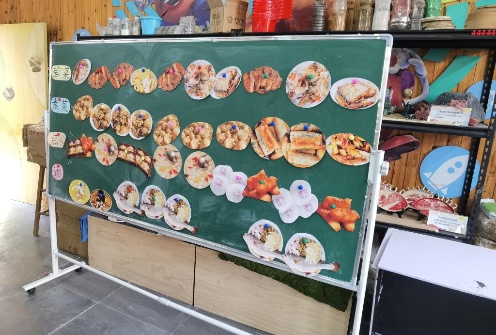 在教室內(nèi)另一張小桌上,擺放著小蔥、馬鈴薯、竹筍等各類農(nóng)產(chǎn)品實物。一位教師問學(xué)生,“你知道哪個是竹筍嗎?竹筍一般種在哪里?”