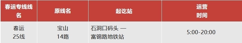 自2月14日(初五)起進入春運客流返程高峰,上海市公交行業(yè)開通了25條春運專線,全力投入春運客流疏運保障。