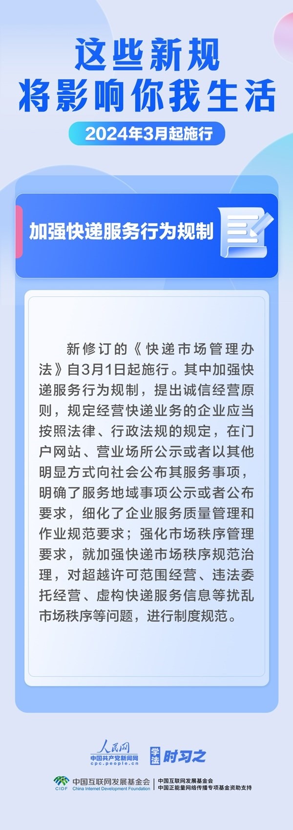 加大對行賄行為懲治力度;規(guī)范檔案收集管理;加強快遞服務(wù)行為規(guī)制……3月起,這些新規(guī)施行,將影響你我生活。