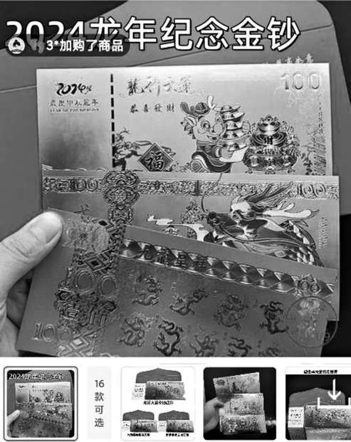 某平臺(tái)售賣(mài)的“龍年紀(jì)念金鈔”,真假難辨。
