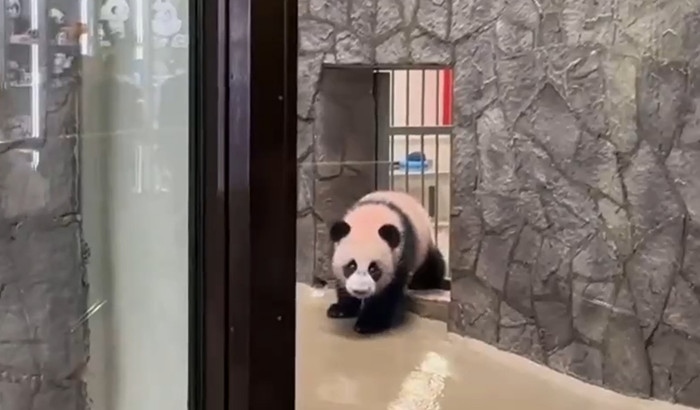 ·首只在俄羅斯出生的大熊貓“喀秋莎”與游客見面。