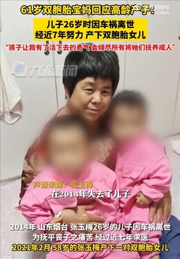 ·61歲雙胞胎寶媽回應(yīng)高齡產(chǎn)子:兒子26歲時因車禍去世,兩個孩子給了我活下去的勇氣,會傾盡所有將兩個孩子撫養(yǎng)成人。