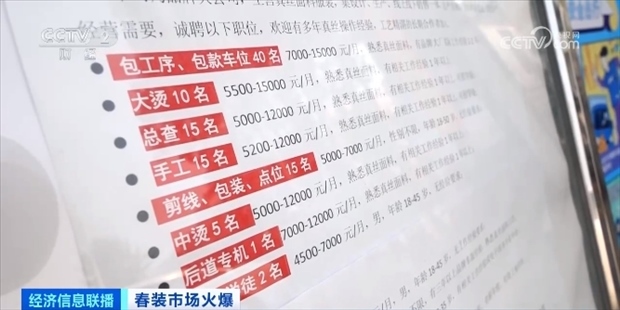 據(jù)了解,開春一般是服裝產(chǎn)業(yè)的用工旺季,訂單多,工人少,因此,此時的工價也是全年最高。