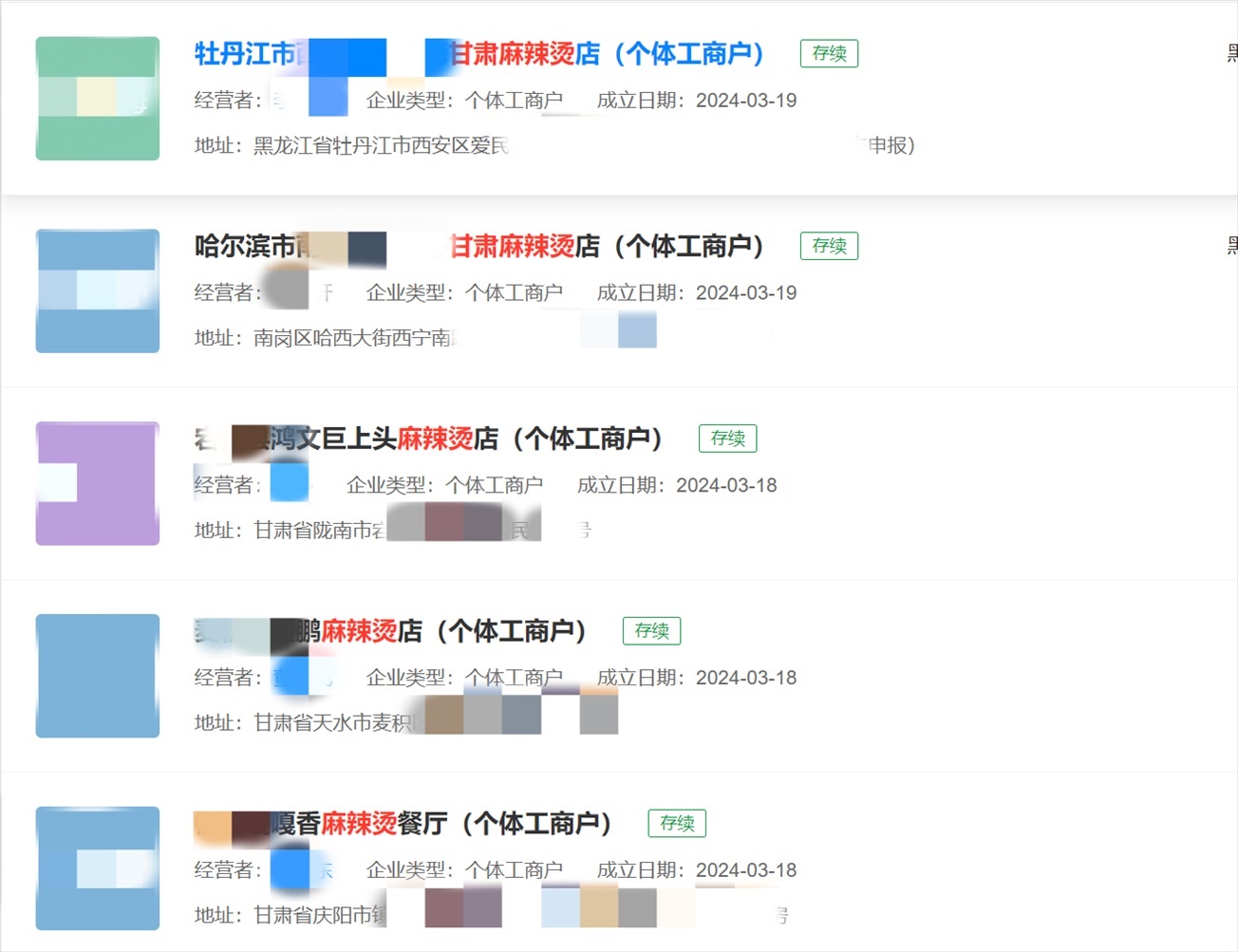 根據(jù)天眼查,今年2月至今,全國新開業(yè)的“甘肅麻辣燙”店已累計超過150家。
