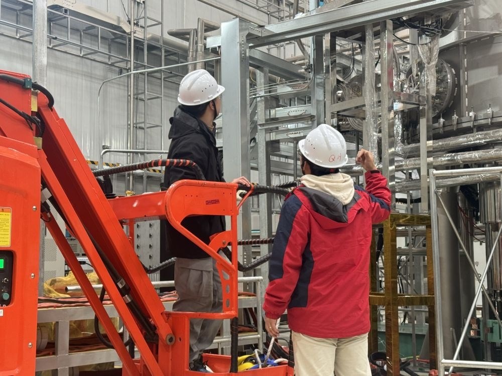 2024年3月12日,工作人員對全高溫超導托卡馬克裝置“洪荒70”進行調試。新華社記者 周琳 攝