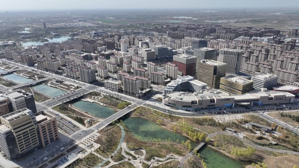 ↑這是雄安新區(qū)商務(wù)服務(wù)中心(3月30日攝,無人機(jī)照片)。