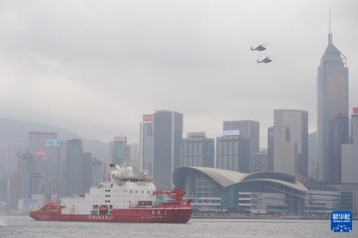 4月8日,“雪龍2”號緩緩駛?cè)胂愀奂馍尘缀_\碼頭,展開為期5天的首次訪港行程。