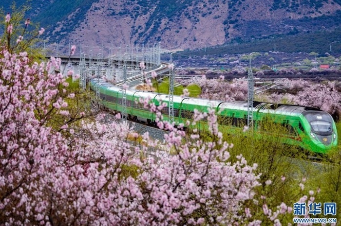 雪域高原桃花開,復(fù)興號上賞春光。拉林鐵路的車票,猶如一張賞花請柬,吸引了眾多游客前來雪域高原賞桃花。