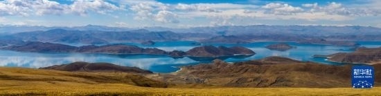 從喀慶拉山上俯瞰羊卓雍錯(拼接照片,4月5日攝)。