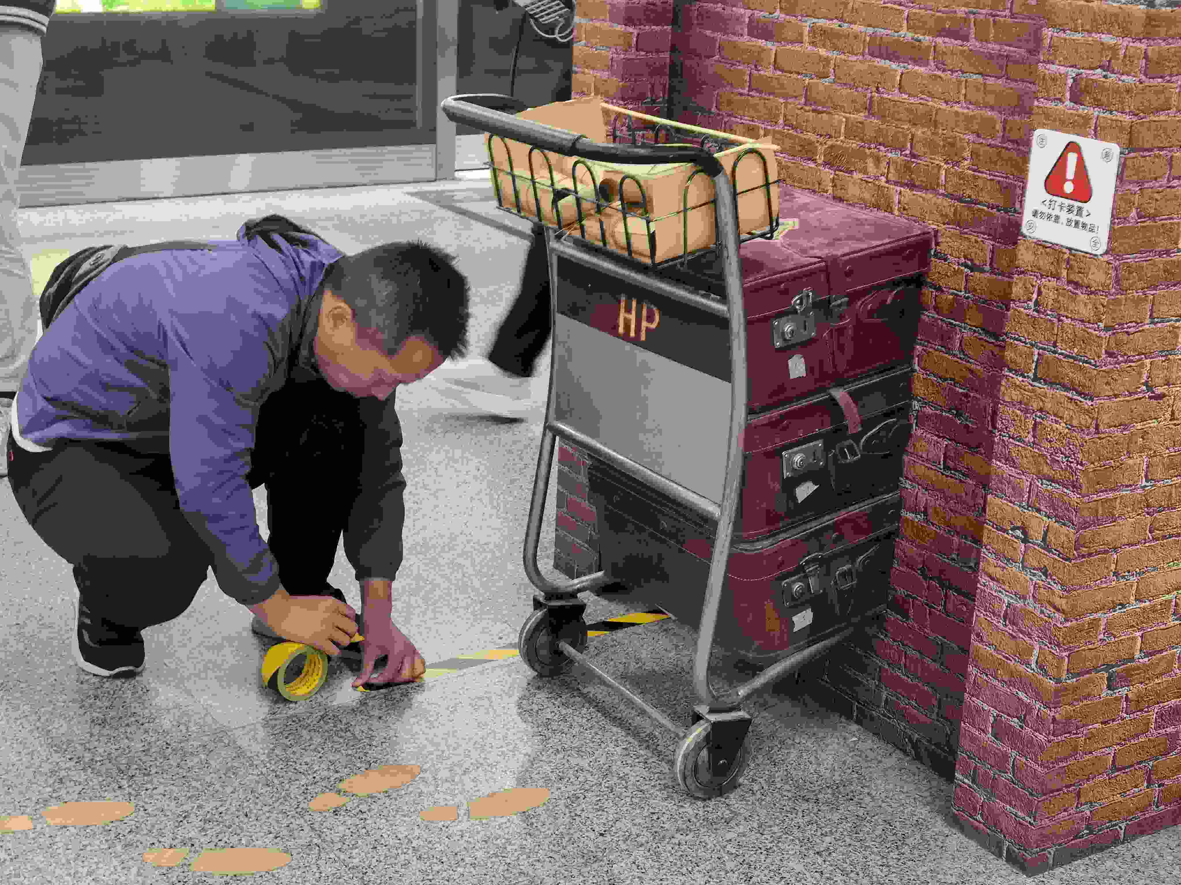 “北京也有9 站臺了!還有誰沒去打卡?”4月9日,在不少社交平臺,這處新加裝的“哈利·波特”主題景觀裝飾墻火了。4月9日下午,記者在地鐵4號線北京大學東門站的站臺上看到,站臺中間被裝飾成了《哈利·波特》經(jīng)典場景9 站臺的樣子。在站臺中間過道處,每一根立柱都被紅磚樣式的海報包裹。最中間的兩根立柱前,分別放置了一輛和電影中一樣“隱沒”在墻里的行李車,車上有3個紅色的小皮箱和一筐黃色的紙卷軸,給整個地鐵站營造出一種復古的魔法風,吸引了不少乘客圍觀拍照。