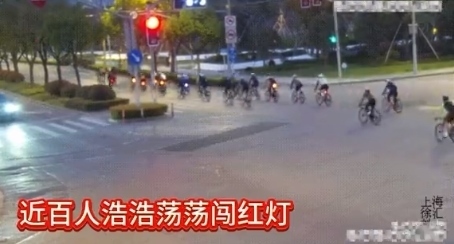 ·“暴騎團(tuán)”近百人無(wú)視交規(guī)闖紅燈,上海交警開(kāi)展專(zhuān)項(xiàng)整治。