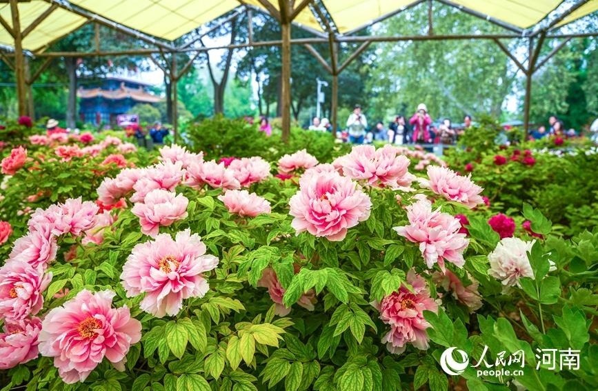 眼下,正是洛陽(yáng)牡丹盛開(kāi)的季節(jié)。在王城公園內(nèi),目前共有550個(gè)品種牡丹開(kāi)放,飛燕紅裝、菱花湛露、金絲貫頂、勝葛巾、姚黃、首案紅等品種牡丹,綻放出傾城之姿,吸引了海內(nèi)外游客前來(lái)賞花游園。