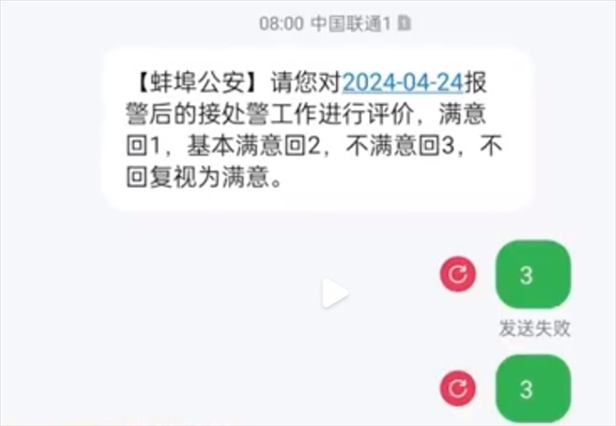 ·滿意度調(diào)查回復(fù)“不滿意”遭攔截?蚌埠公安民意熱線:或因網(wǎng)絡(luò)故障。
