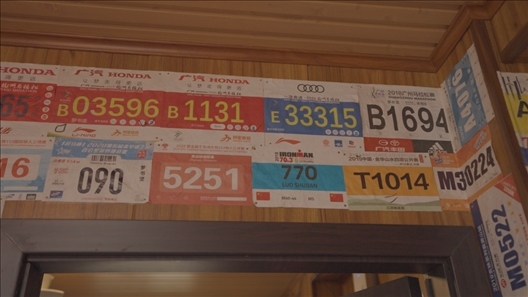 每次跑完馬拉松,羅書(shū)堅(jiān)都會(huì)把號(hào)碼牌貼在墻上,那是他激勵(lì)自己的一種特殊方式。