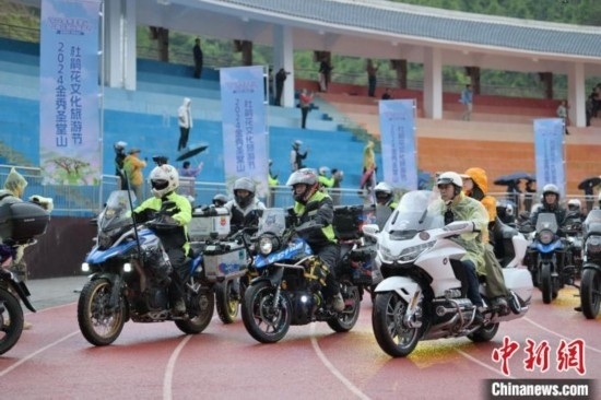 隨后,“5·17”騎行季活動(dòng)將現(xiàn)場(chǎng)氣氛推向高潮。伴隨著發(fā)車儀式的號(hào)令,800余輛機(jī)車轟鳴啟動(dòng),浩浩蕩蕩的車隊(duì)自縣城體育場(chǎng)出發(fā)前往圣堂山。騎行者們?cè)谇嗌骄G水間享受著騎行運(yùn)動(dòng)的樂趣,感受美麗的杜鵑花海。