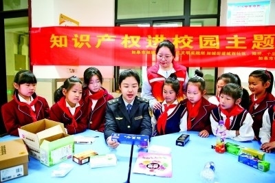 江蘇如皋市版權局聯(lián)合市場監(jiān)督等部門,圍繞商標權、專利權等開展“知識產權進校園”宣傳教育活動。新華社發(fā)