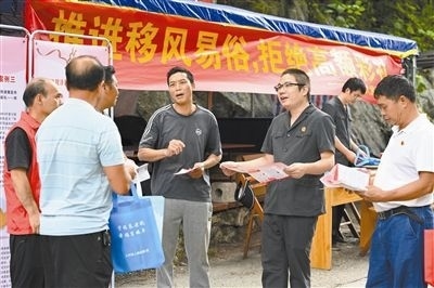 近日,廣西壯族自治區(qū)上林縣人民法院開展“推進(jìn)移風(fēng)易俗,拒絕高額彩禮”法治宣傳進(jìn)鄉(xiāng)村活動。法院干警通過以案釋法和分發(fā)文明婚俗倡議書等方式,為村民解讀了涉彩禮糾紛法律規(guī)定,并就村民關(guān)注的彩禮認(rèn)定范圍、返還規(guī)則以及男女雙方共同生活認(rèn)定規(guī)則等熱點(diǎn)問題進(jìn)行了釋法答疑。圖為法院干警在和村民交流。本報記者 吳 琪 本報通訊員 韋姍婷 周 群 攝
