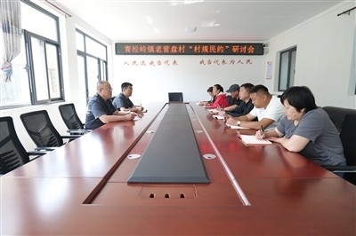 興隆法院法官指導(dǎo)老營(yíng)盤村村委會(huì)開展“村規(guī)民約”研討。