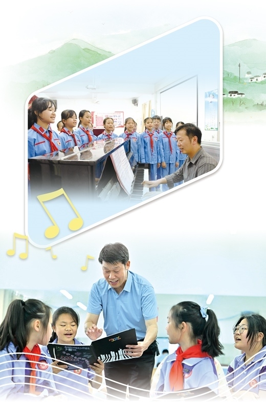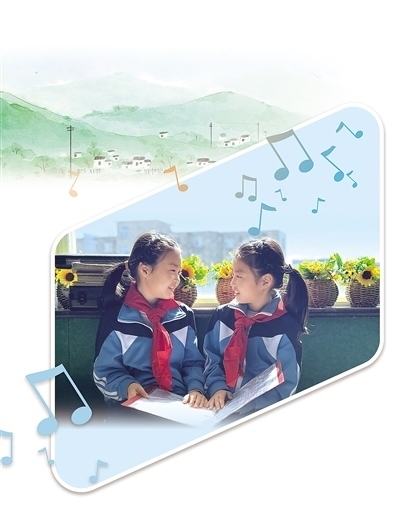 講臺上,隨著廖光新的雙手向前一打開,學生們齊刷刷地唱了起來?!敖裉焯鞖夂茫フ腋赂拢ㄍ馄牛﹪D……”稚嫩而清脆的聲音瞬間充滿整個教室,透過窗戶傳向遠處的大山。