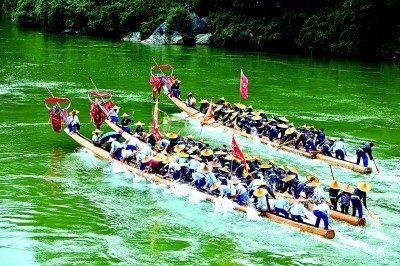 每年農(nóng)歷五月,在貴州省黔東南苗族侗族自治州的清水江流域,當?shù)氐拿缱迦罕姸紩e辦苗族獨木龍舟節(jié)。龍舟節(jié)以水上龍舟競渡為載體,融合了苗族服飾文化、歌舞文化、飲食文化等,數(shù)百年經(jīng)久不衰,沿襲至今。2008年,苗族獨木龍舟節(jié)便被列入第二批國家級非物質(zhì)文化遺產(chǎn)代表性項目名錄。