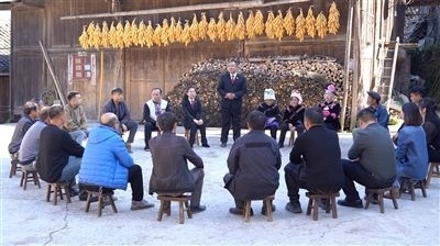 圖為法官組織院壩嘎歌會,助力完善“榔規(guī)榔約”。