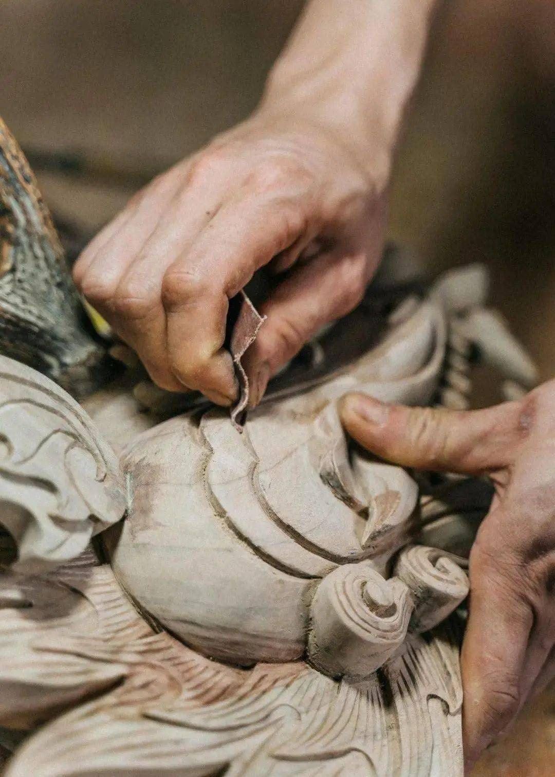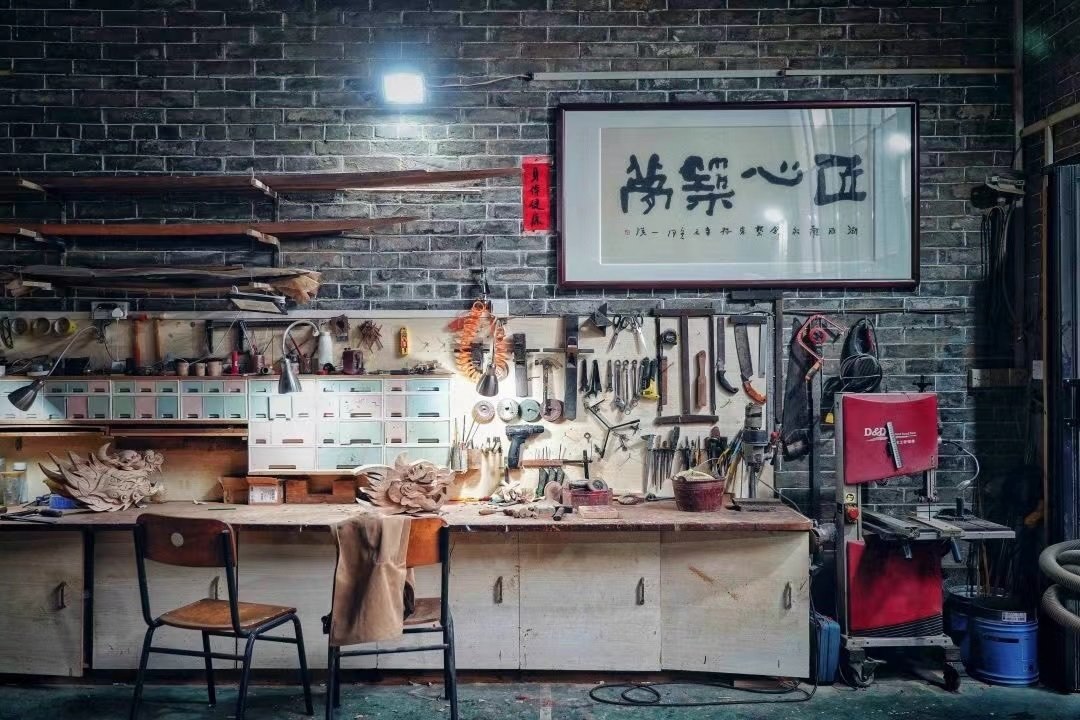 張偉潮身上的傷也沒(méi)斷過(guò)?!疤焯旄洞蚪坏?,有時(shí)候傷口剛縫了線,回到家一干活,刀口又開(kāi)了”,手臂上、手背上遍布的傷疤,見(jiàn)證了每一個(gè)龍頭的誕生?!懊肯乱坏叮叶家呀?jīng)想好了后面的第二步、第三步”,龍頭雕刻極為考究,從選料、切割,到粗雕、精雕,再到打磨、拋光、裱漆,十幾道繁瑣工序,全靠師傅的眼光和手藝。機(jī)械化、流水線,做不出龍頭嗎?在數(shù)不清的日夜里,光影斑駁間,張偉潮拿著父輩傳下的一刀一錘,一下一下,慢慢開(kāi)鑿,給出自己的答案。