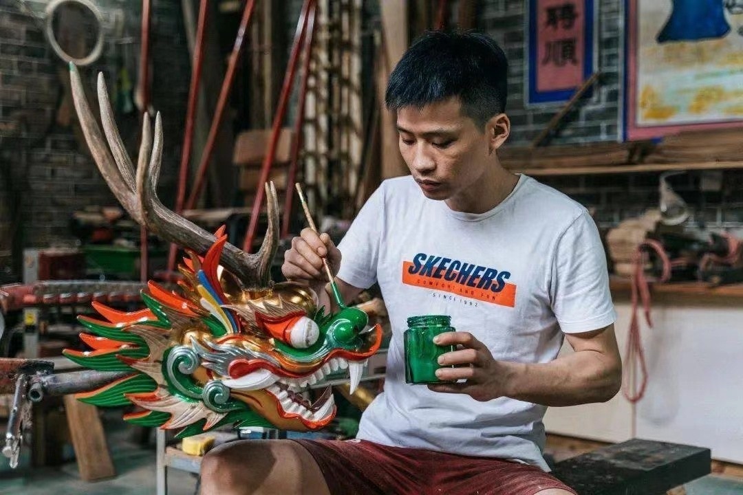 那兩年,張偉潮身邊做龍頭的老匠人們或退休,或轉(zhuǎn)行,是最愁無(wú)人接班的時(shí)候。在沒(méi)人支持的落寞下,張偉潮迎頭撞進(jìn)了這個(gè)行當(dāng)。那是2010年,很快到來(lái)的,是龍舟的流行。