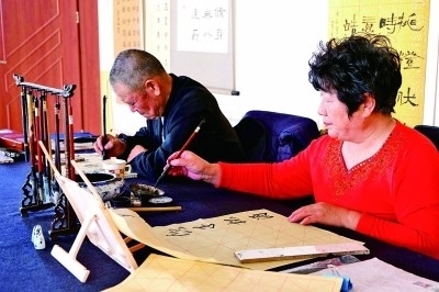 市民在社區(qū)文化中心練習(xí)書法。光明日?qǐng)?bào)記者 郭俊鋒攝