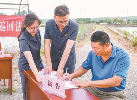 近日,安徽省天長市人民法院秦欄人民法庭法官來到東風(fēng)村螃蟹養(yǎng)殖基地,公開開庭審理一起農(nóng)業(yè)承包合同糾紛案。法官經(jīng)過現(xiàn)場勘查、細(xì)心調(diào)解,當(dāng)場化解糾紛,養(yǎng)殖戶投放的500斤蟹苗有了著落,村委會減少了經(jīng)濟(jì)損失。