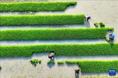 “三夏”時(shí)節(jié),綿陽(yáng)市安州區(qū)秀水鎮(zhèn)石紅村一派忙碌景象。插秧機(jī)在田間穿梭,村民周啟軍忙著補(bǔ)栽秧苗。“最近活多,按照‘經(jīng)紀(jì)公司’安排,除了農(nóng)忙插秧,下個(gè)月還得安裝路燈、修補(bǔ)堰塘?!崩现苷f(shuō)。