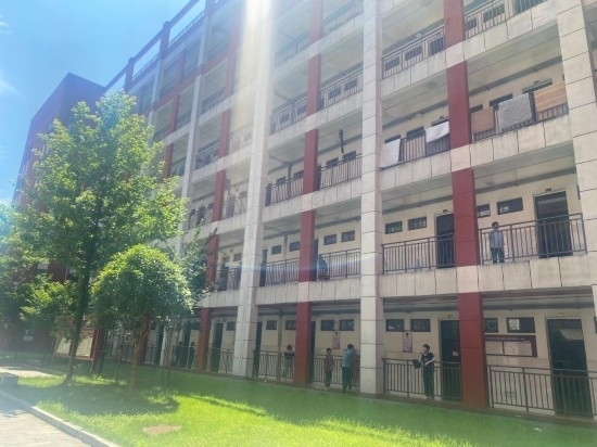 6日凌晨,垸內(nèi)居民被陸續(xù)轉(zhuǎn)移至各安置點(diǎn)。肖菊香和丈夫被安排在華容縣職業(yè)中專的宿舍一樓居住,房間里有涼爽的空調(diào)和獨(dú)立衛(wèi)浴。臨近中午,他們的兒女從遠(yuǎn)方趕來(lái)探望。記者看到,宿舍樓里還有一群學(xué)生志愿者,他們給轉(zhuǎn)移群眾送來(lái)了盆子、桶子等生活用品,不一會(huì),又給大家搬來(lái)小桌椅和公用插排,方便手機(jī)充電。