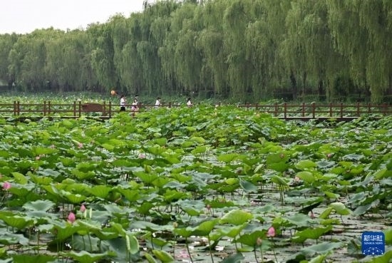 近日,河北雄安新區(qū)白洋淀荷花大觀園內(nèi)的荷花競(jìng)相開放,吸引眾多游人前來觀光游覽。