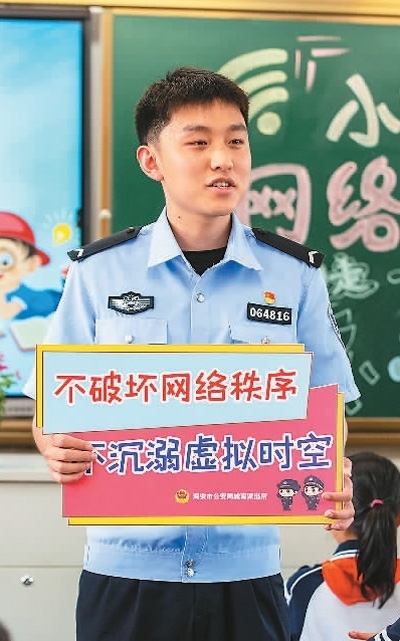 江蘇省海安市公安局城南派出所民警在給該市教師發(fā)展中心附屬小學學生上網絡安全知識課。翟慧勇攝(人民視覺)
