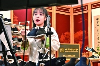 “大柵欄的游客多,每天約4000人來店光顧,其中有中老年,也有年輕人,還有寶媽帶著‘小不點(diǎn)兒’來買鞋的?!北本﹥?nèi)聯(lián)升副總經(jīng)理張景環(huán)說,據(jù)她觀察,不少年輕人如今也有了穿老布鞋的喜好,“我們在成都太古里首發(fā)了一款跨界聯(lián)名的布鞋,樣子新穎,比較時(shí)尚,一經(jīng)推出便售罄了?!?/p>