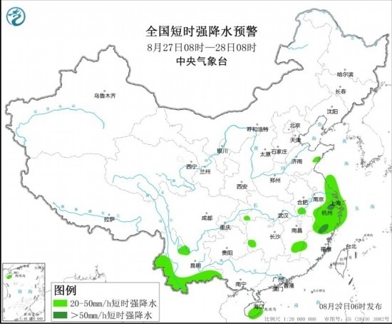 中新網(wǎng)8月27日電 據(jù)中央氣象臺(tái)網(wǎng)站消息,中央氣象臺(tái)8月27日6時(shí)發(fā)布強(qiáng)對(duì)流天氣藍(lán)色預(yù)警:預(yù)計(jì)8月27日8時(shí)至28日8時(shí),內(nèi)蒙古地區(qū)東北部、江淮東部、江南東北部和南部、西南地區(qū)東南部等地的部分地區(qū)將有8級(jí)以上雷暴大風(fēng)或冰雹天氣;黃淮東部、江漢西部、江淮西南部和東部、江南中東部、西南地區(qū)南部、華南南部等地的部分地區(qū)將有小時(shí)雨量大于20毫米的短時(shí)強(qiáng)降水天氣,其中,浙江北部和南部、福建北部等地的部分地區(qū)小時(shí)雨量大于50毫米,最大可達(dá)80毫米以上。