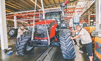 八月二十七日,山東青州經(jīng)濟(jì)開發(fā)區(qū)一家大馬力拖拉機(jī)制造企業(yè)內(nèi),工人正在車間進(jìn)行裝配作業(yè)。王繼林?jǐn)z(人民視覺)