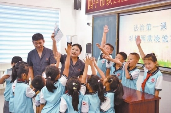 近日,吉林省四平市鐵西區(qū)人民法院依托法治副校長工作機制,攜手四平市陽光實驗小學(xué)舉辦了一場生動的“開學(xué)第一課”,通過與同學(xué)們互動問答、角色扮演等形式,為青少年健康成長營造良好法治環(huán)境,不斷提升青少年群體的法治素養(yǎng)。圖為法官與同學(xué)們在課堂上進行互動交流。(記者 孫兵 通訊員 任青陽)