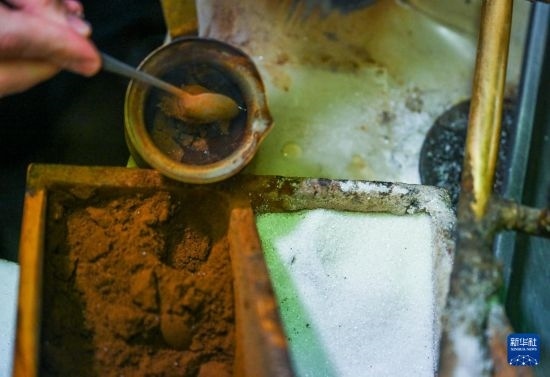 12月5日,在土耳其伊斯坦布爾一家咖啡館內(nèi),一名工作人員往器皿中添加咖啡細粉。