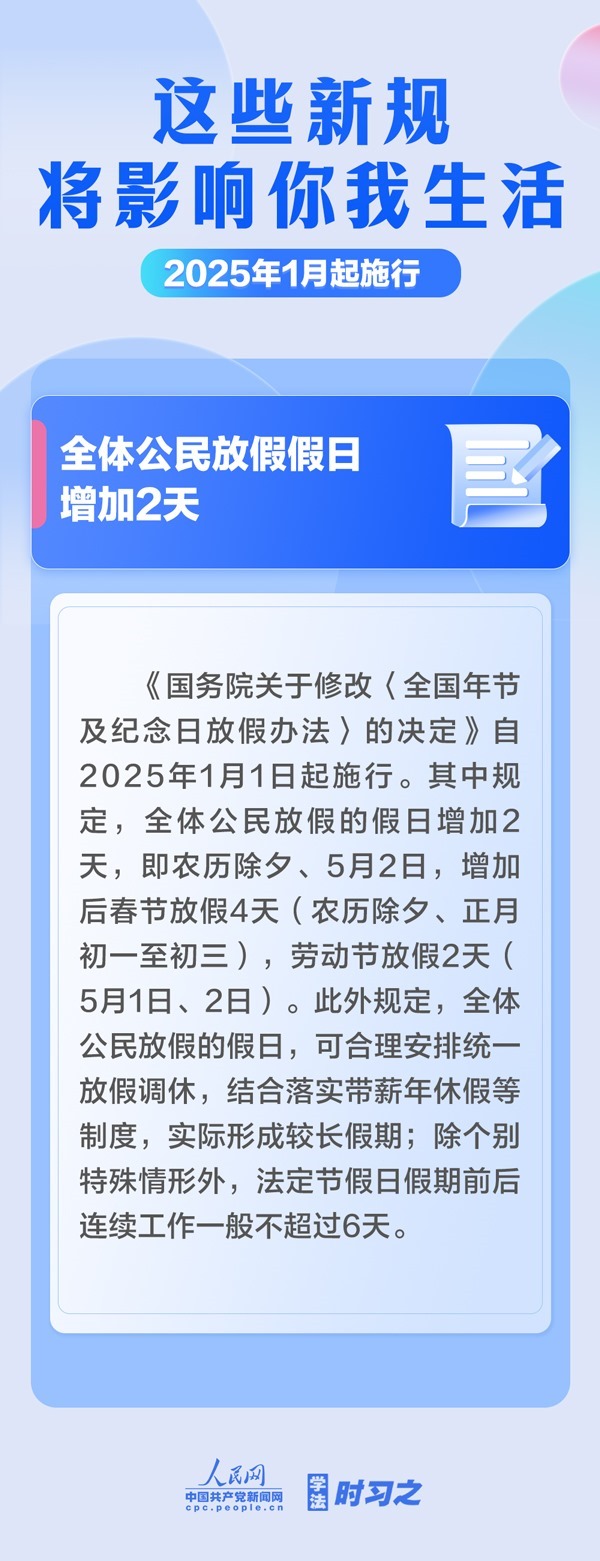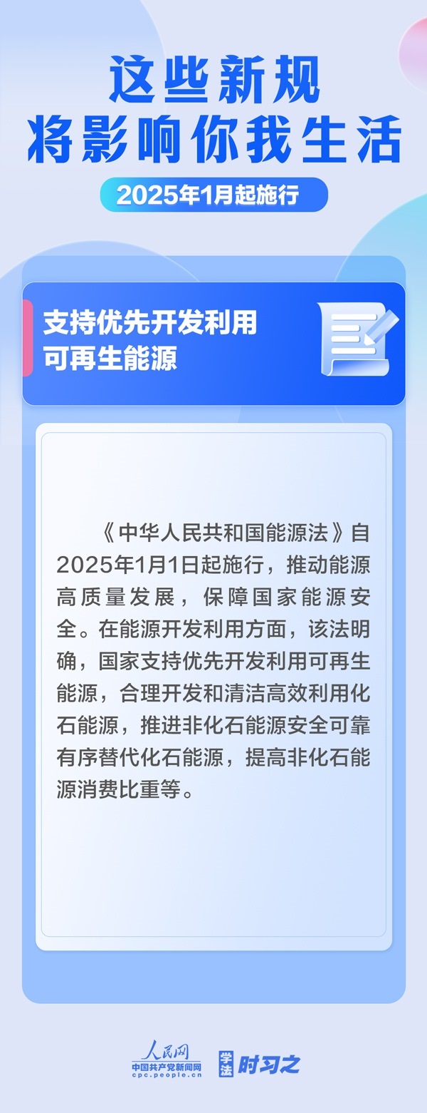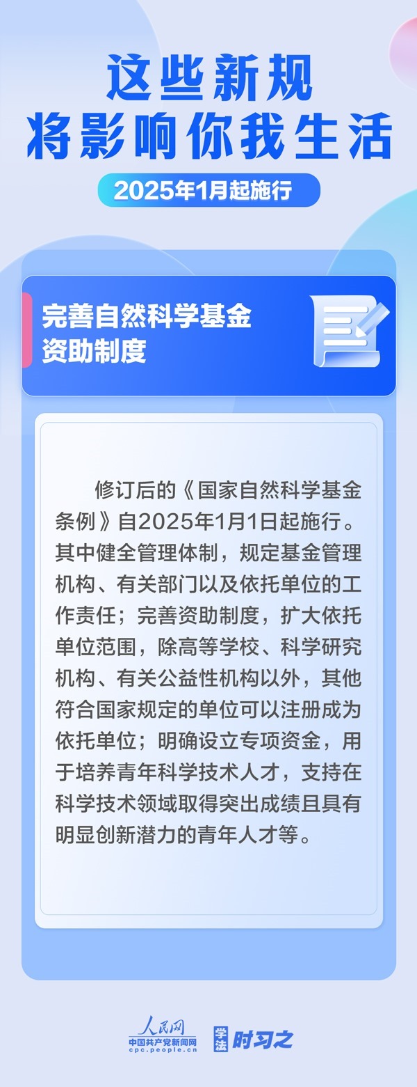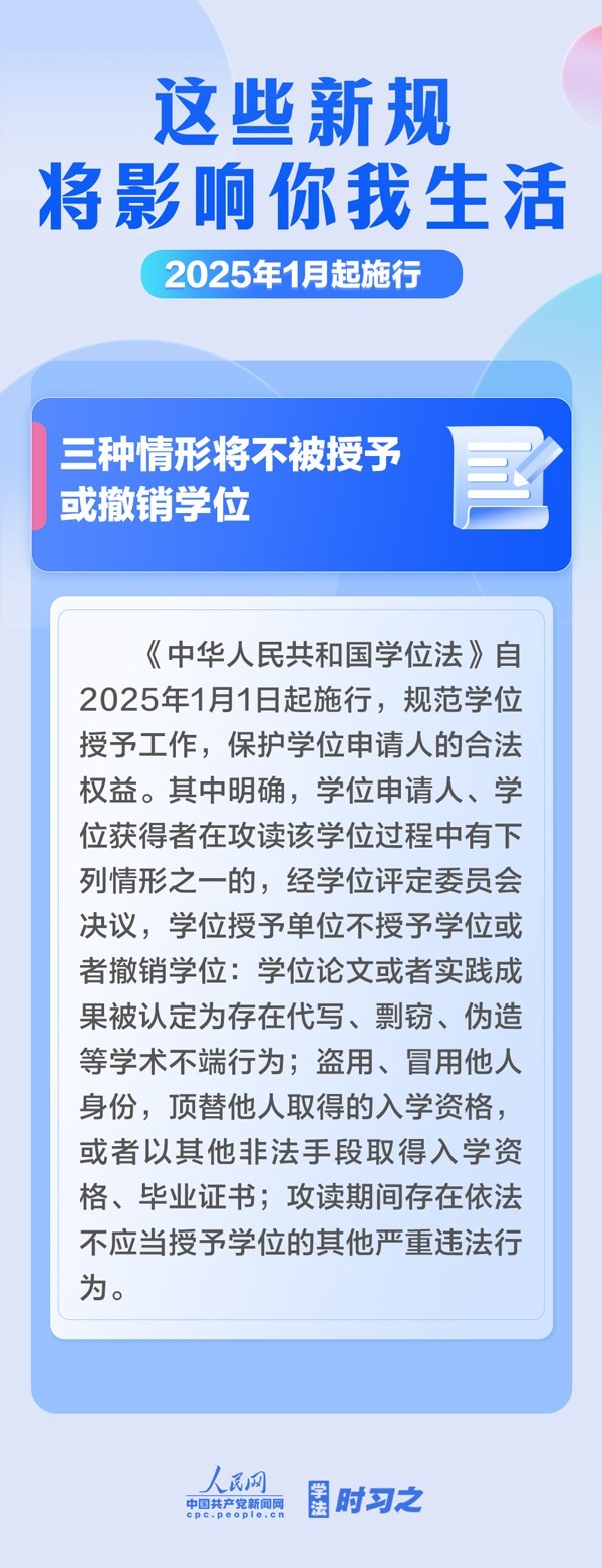 明確不授予學(xué)位或者撤銷學(xué)位的三種情形;支持優(yōu)先開(kāi)發(fā)利用可再生能源;漸進(jìn)式延遲法定退休年齡;完善自然科學(xué)基金資助制度……2025年1月起,這些新規(guī)施行,將影響你我生活。