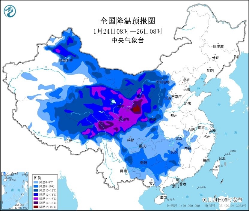 今明兩天,寒潮將主要影響我國西部地區(qū),新疆北部、西藏中北部、青海、甘肅、寧夏、陜西、山西西部、川西高原北部等地將先后降溫8~10℃,其中,新疆北部、甘肅西部和南部、寧夏大部、陜西南部、川西高原北部等地部分地區(qū)降溫可達12℃以上 。1月26日至27日,冷空氣繼續(xù)東移南下,華北及其以南大部地區(qū)將有明顯降溫。