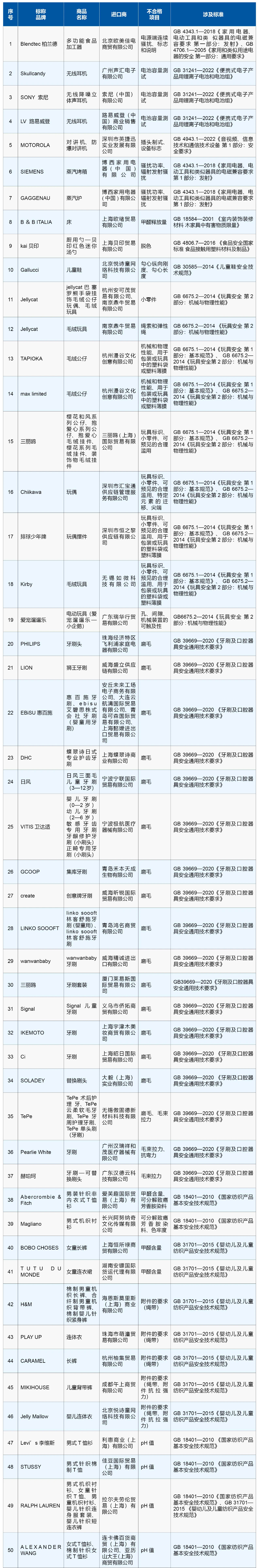 據(jù)海關(guān)總署介紹,不合格情況包括進口小家電電池容量測試、電器輻射發(fā)射項目不合格;進口玩具機械和物理性能、小零件項目不合格;進口服裝甲醛含量、可分解致癌芳香胺染料超標;進口家具甲醛釋放量超標;進口牙刷磨毛不合格等。