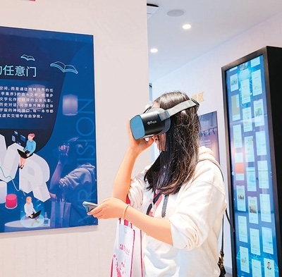 近日,云南省第四屆全民閱讀大會(huì)在昭通市昭通古城舉行?;顒?dòng)包括惠民書(shū)展、非遺體驗(yàn)、文創(chuàng)展銷(xiāo)等活動(dòng),營(yíng)造愛(ài)讀書(shū)、讀好書(shū)、善讀書(shū)的書(shū)香氛圍。圖為市民在云南省昭通市一家書(shū)店體驗(yàn)VR閱讀。