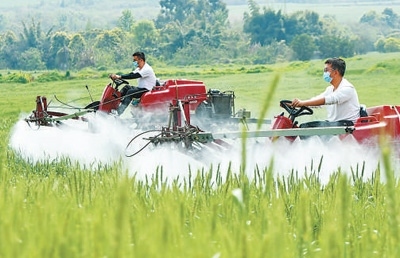 四川成都市雙流區(qū)黃水鎮(zhèn),95后新農(nóng)人對小麥進(jìn)行植保作業(yè)。