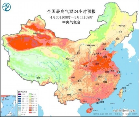 昨日,河北南部等地最高氣溫超過(guò)35℃。預(yù)計(jì)今天,華北、黃淮一帶氣溫仍較高,包括鄭州在內(nèi)的部分地區(qū)今天最高氣溫可達(dá)35℃。五一假期臨近,氣象專家提醒,假日前期全國(guó)大部地區(qū)降雨偏弱,氣溫偏高,公眾在外出游玩時(shí)注意防暑防曬。假日后期南方地區(qū)雨水增多,外出時(shí)需注意避雨和防御強(qiáng)對(duì)流天氣。