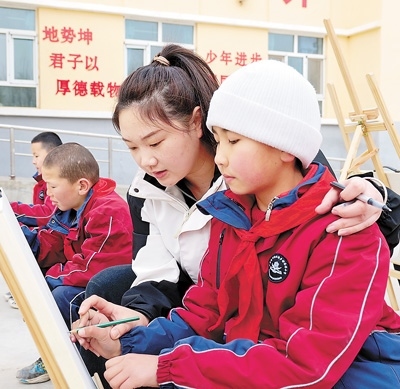 2023年,高潮從山西大同大學(xué)美術(shù)學(xué)院畢業(yè)前,看到了西部計劃的招募信息?!耙ツ敲催h(yuǎn)的地方當(dāng)老師嗎?”高潮有點(diǎn)猶豫。她小時候在鄉(xiāng)村小學(xué)讀書,因為老師少,很多課程都開展不起來,“想到自己小時候的經(jīng)歷,我下定了決心?!?/p>