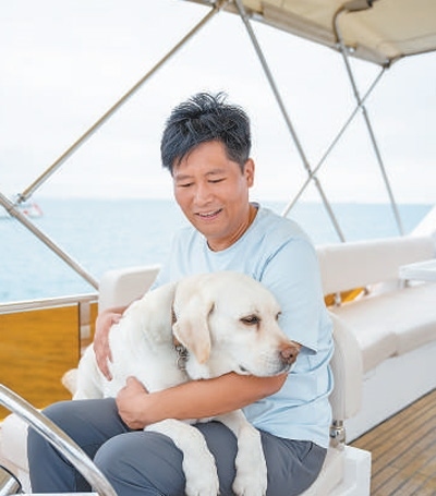 趙秋寶和他的導(dǎo)盲犬阿爾法。